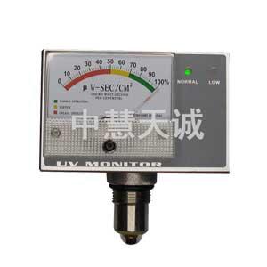 產品簡介: 板表上配紅、黃、綠三種顏色的強度指示,當紫外線強度在70%-100之間時,指針指在綠色強度正常工作范圍; 當紫外線強度在50%-70%之間時,指針指在黃色強度警告工作范圍; 當紫外線強度在50%以下時,指針指在紅色報警工作范圍,同時報警狀態有一對繼電器干接點輸出。 主要特點: 1.紫外線傳感器: 采用紫外光電二極管,對紫外線210-380nm波段輻照強度進行檢測。 2.分體式:傳感器、控制器、板表分離。 3.安裝:傳感器探頭采用螺紋連接方式,板表(80×64mm)采用兩顆螺釘固定在電控箱面板上;控制器采用安裝在導軌上。 4.調試:調節W3電位器,使IN和GND間電壓輸出為5±1% V。 5.維修:當數顯表顯示在50%及以下時,提醒紫外線強度不足,需要清洗玻管、探頭或者換燈管。 規格參數: 工作電壓:AC220V±10%; 顯示強度:相對強度; 顯示精度:0.1%; 探頭儲存溫度范圍:-55℃~+125℃; 探頭工作溫度范圍:-55℃~+70℃; 探頭螺紋尺寸:M26×2mm(可根據客戶要求定制)。 現場安裝: 運行:安裝好儀器和強度監測儀探頭,并接通進、出水路,然后接通燈管電源,待燈管工作穩定后(15-20分鐘)再進行調節。 顯示調節:調節峰值電位器W3,使指針指在100刻度。 報警調節:擰下探頭,然后逐漸移動探頭,當指針指在50%刻度時,調節W2電位器。