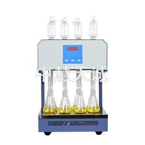 產(chǎn)品介紹: COD恒溫消解器采用控制加熱電爐,可對6個、8個、10個等加熱瓶回流裝置同時進行加熱。同時采用玻璃毛刺回流管、風冷的冷卻方式。 儀器的溶液配制、操作和COD的計算是按照GB11914要求;低于50mg/L的COD水樣可通過稀釋滴定劑和氧化劑,高于700mg/L的COD水樣,可通過水樣的比例稀釋來完成測定。 采用數(shù)字設(shè)定,顯示加熱溫度,自動控制加熱溫度。 產(chǎn)品特點: 1.時間控制恒溫加熱器;時間可設(shè)定。 2.計算加熱回流時間,加熱回流時間2小時,儀器自動關(guān)機。 4.加熱板底每個加熱孔恒溫。 規(guī)格參數(shù): 消解樣品數(shù):6孔,8孔、10孔等選配 測量范圍:0-1000mg/L、0-10000mg/L(水樣稀釋) 測量時間:<2小時 測量誤差:鄰苯二甲酸氫鉀標準溶液(500mg/L),偏差<5.0% 溫度調(diào)節(jié):32℃-399℃ 恒溫精度:±2℃ 供電電壓:AC220V±10% 使用說明: 1.風扇:控制風扇的打開和關(guān)閉。 2.設(shè)定:消解時間控制設(shè)定鍵。儀器開機設(shè)定時間為2小時30分鐘。每按次設(shè)定鍵自動減去10分鐘,用回流法測定COD時應設(shè)定為2小時。 3.開始:消解開始控制鍵,按“開始"鍵后儀器進行加熱回流消解,并且從設(shè)定值(如2小時)處計時,加熱指示燈亮。當?shù)皆O(shè)定時間后,儀器自動停止加熱,加熱指示燈滅。